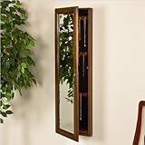 ▷▷▷▷▷ Wall-Mounted Rectangle Jewelry Cabinet with Mirror - Walnut Finish | Jewelry Armoires